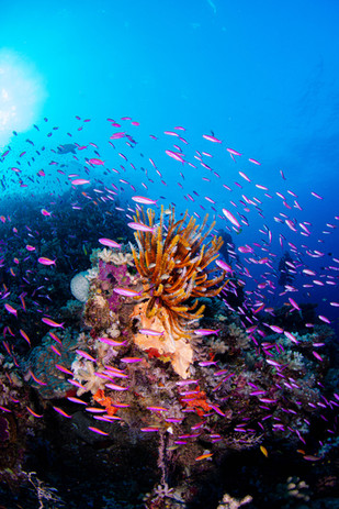 At North Horn, one of Australia’s most famous dive sites, you will see grey reef, silvertip, and oceanic sharks moving through the blue in powerful loops. The optional shark feed here is one of the most extraordinary experiences to witness underwater.